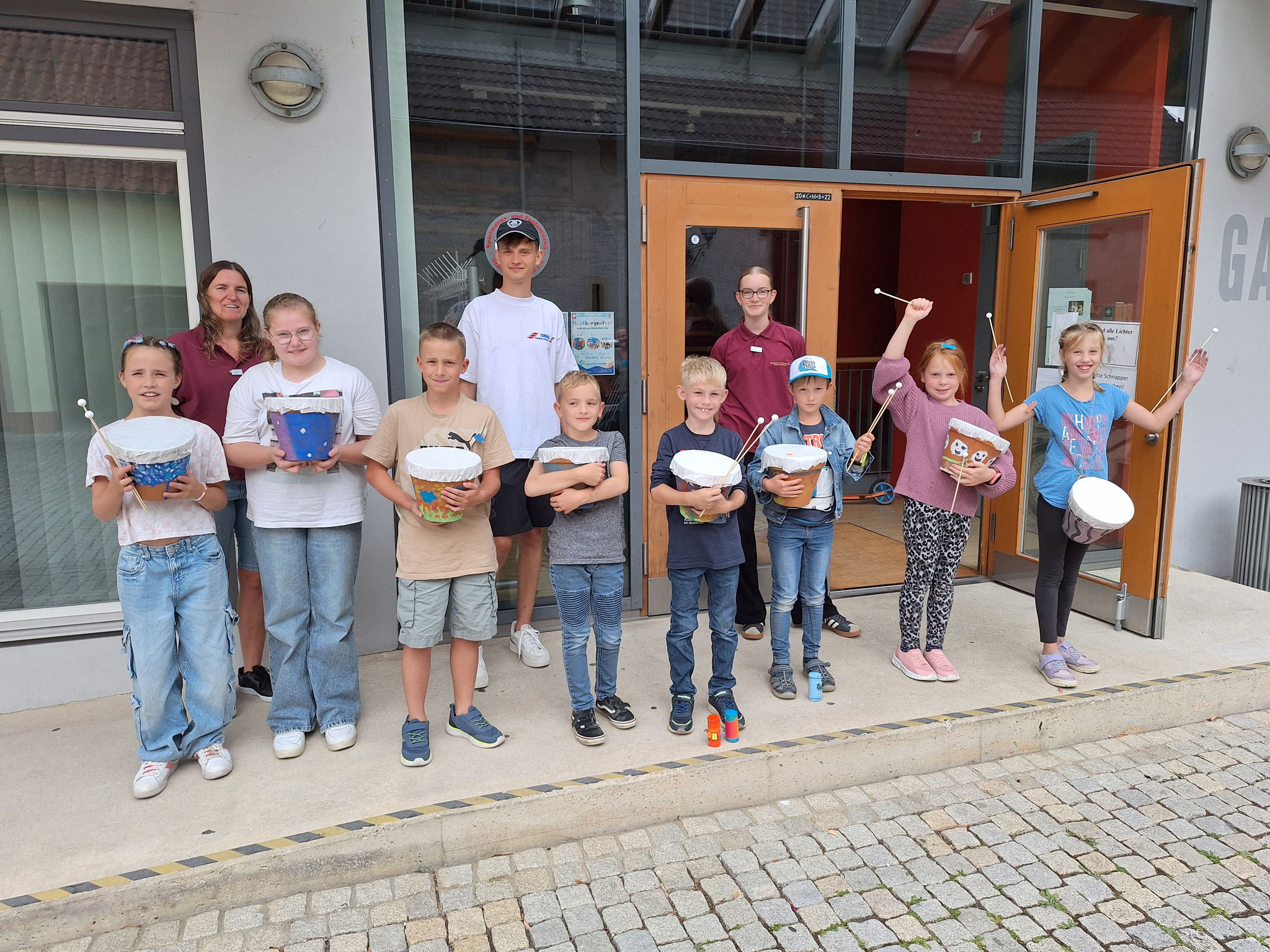 9 Jungs und Mädchen fanden sich ein, um aus Tontöpfen und Backpapier Trommeln zu basteln. Es wurde fleißig geschnitten und geklebt – wunderschöne Bemalungen durften natürlich auch nicht fehlen. Wem etwas schwerfiel, dem wurde sogleich von den Größeren geholfen. So kamen alle gemeinsam zum Ziel und haben hübsche Instrumente gezaubert, die bestimmt auch den Eltern in der Zeit danach noch viel Freude bereitet haben.